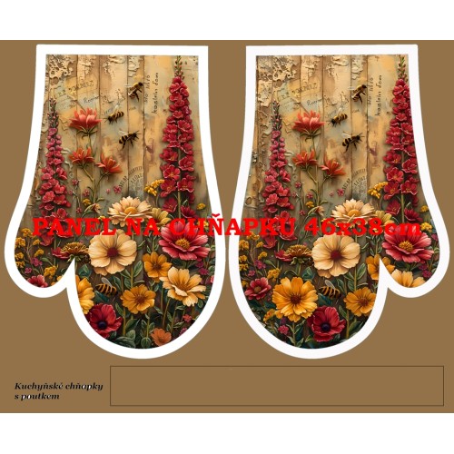 Pokud něco potřebujete, volejte :-)Autorské panely na chňapky - velikost celého panelu je 46x38cm, délka rukavice je 29,8cm